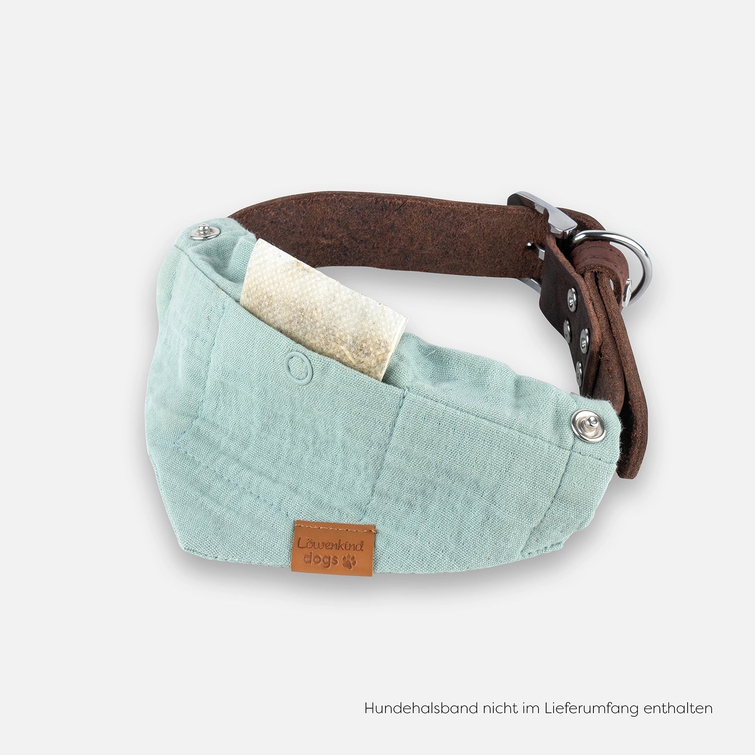 Das Kräuterpad wird ins Löwenkind Halstuch gesteckt. Dank der Körperwärme wird der Duft der Kräuter verstärkt.